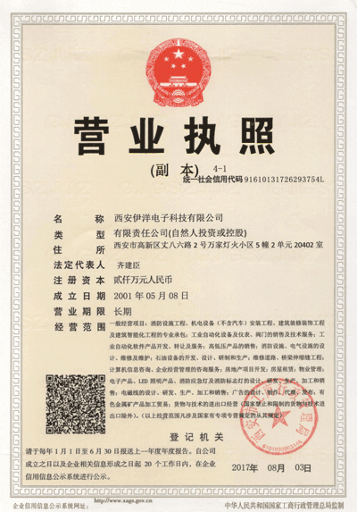 西安伊洋電子科技有限公司,成立于2001年,坐落于陜西西安,是國內具有消防設施施工一級資質,專業從事智能建筑消防設施工程,機電設備安裝工程的專業公司;是陜西省、西安市民營科技企業,中韓企業合作促進會理事單位,中國消防企業聯盟委員會會員單位,2013中國消防行業十大科技創(chuàng)新企業。西安伊洋電子科技有限公司在2014年2月注資成立...>>詳細內容